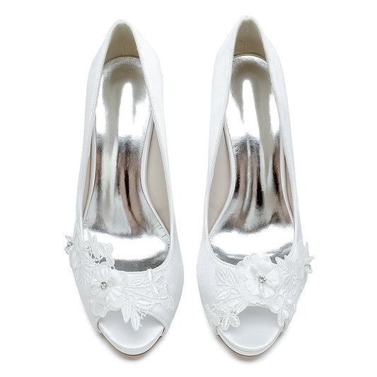 Women's Flower Closed Toe Silk Satin With Stiletto Heel Wedding Shoes