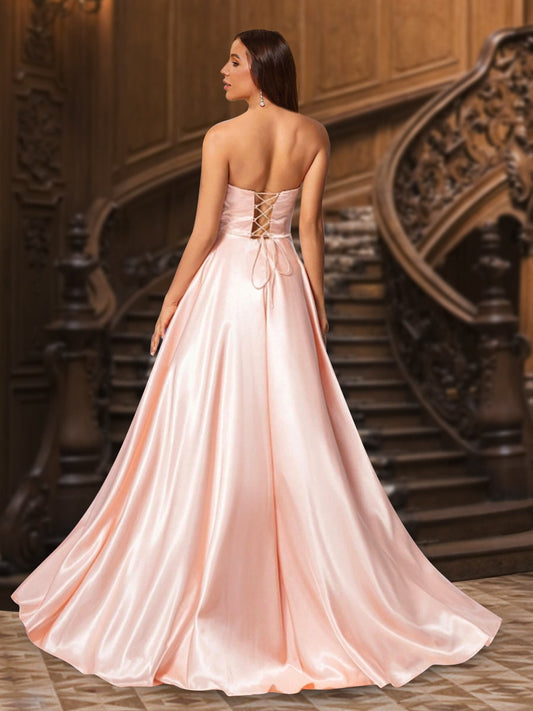 Sheath/Column One-Shoulder Floor-Length Prom Dresses with Split Side
