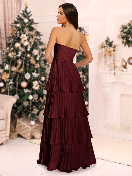 A-Line/Princess Strapless Sleeveless Christmas Dresses with Pleats