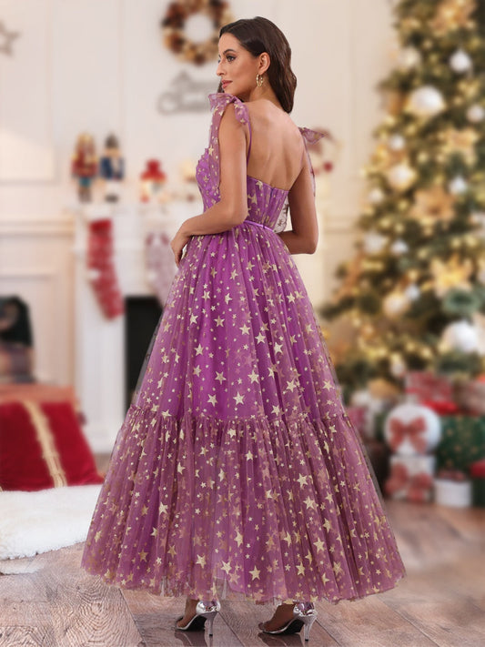 A-Line/Princess Spaghetti Straps Long Christmas Dresses with Ruffles