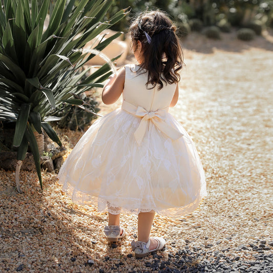 A-Line/Princess Scoop Puff Sleeves Flower Girl Dresses with Bow Knot
