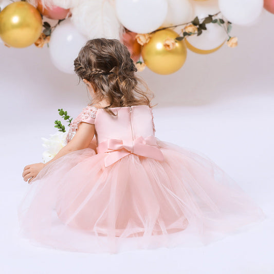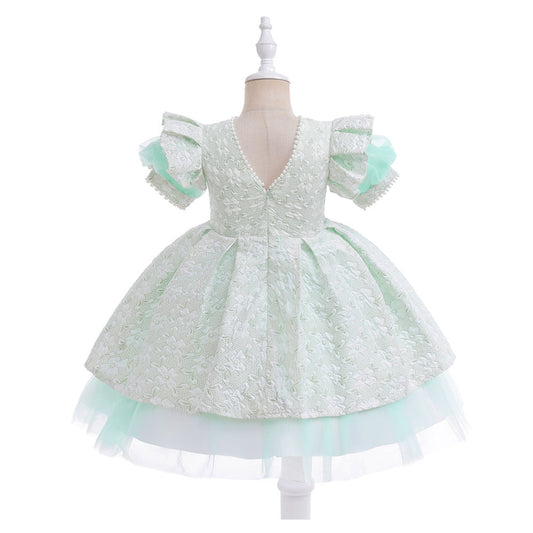 A-Line/Princess V-Neck Puff Sleeves Flower Girl Dresses with Pearls