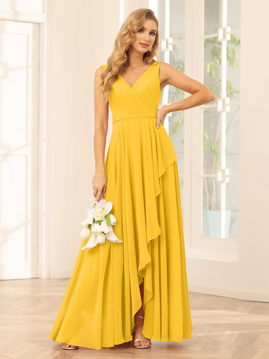 #Jovie 9901298 A-Line/Princess V-Neck Asymmetrical Bridesmaid Dresses with Ruffles