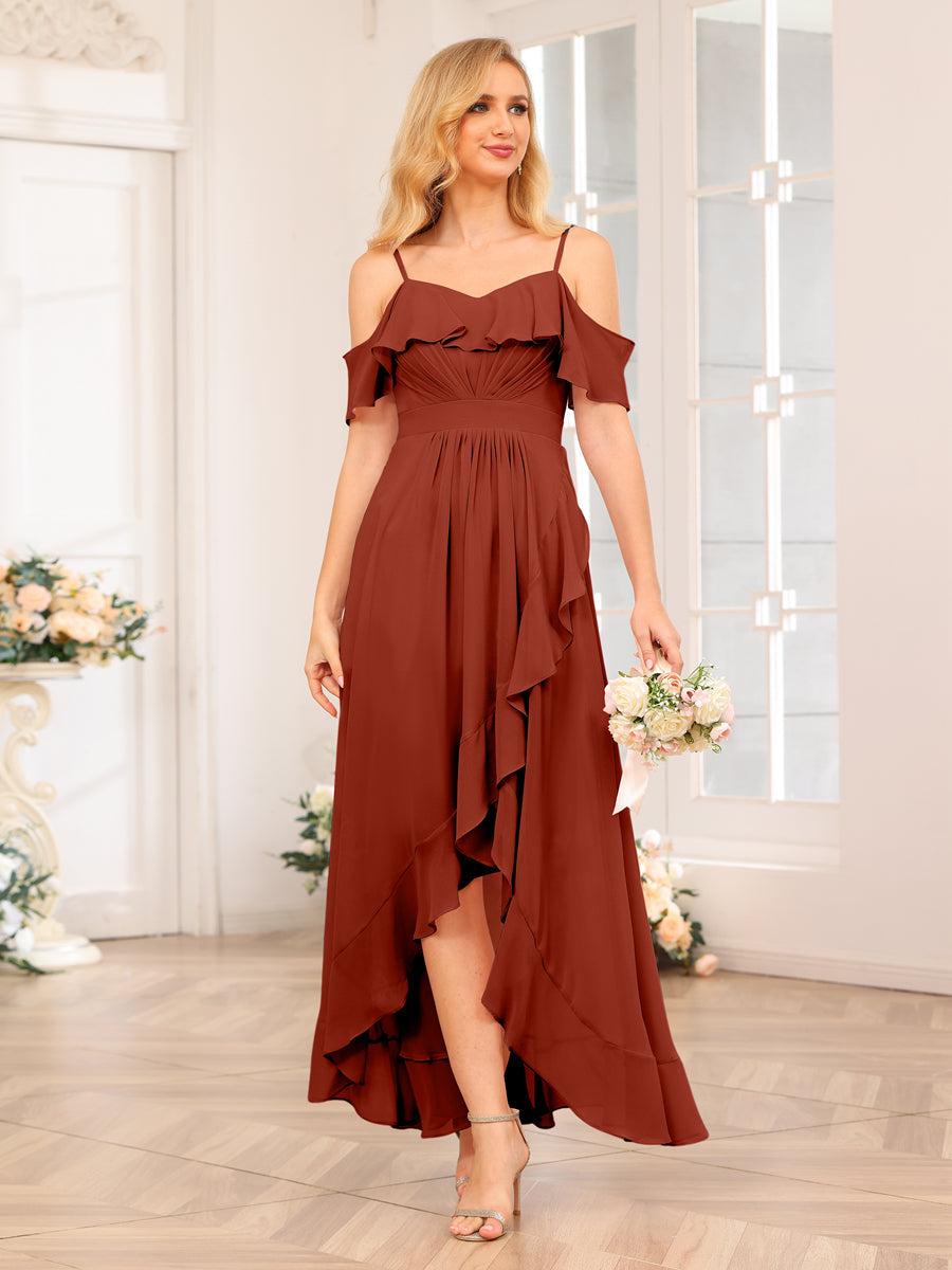 #Presley 9904539 A-Line/Princess Spaghetti Straps Long Wedding Party Dresses with Ruffles