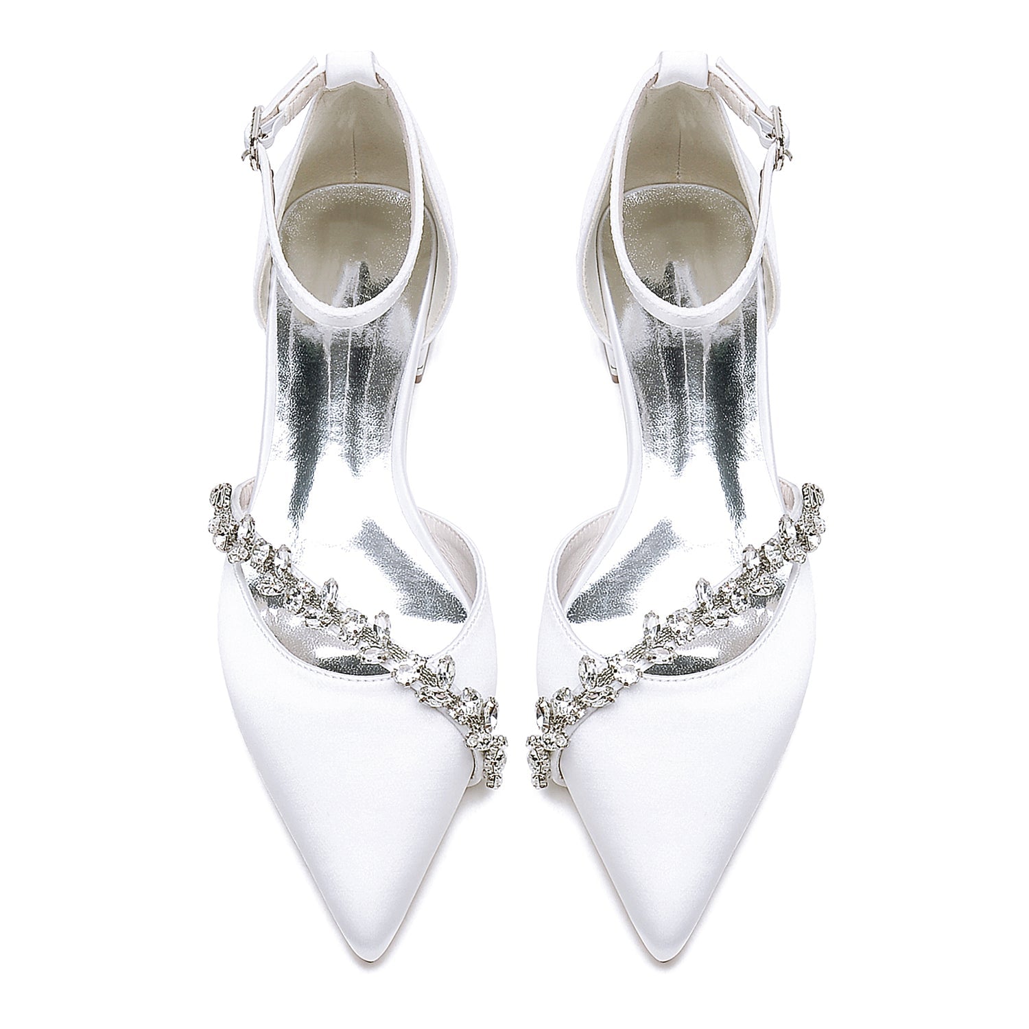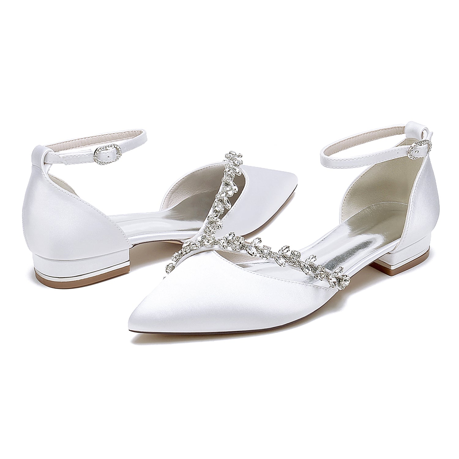 Women's Silk Satin With Ankle Strap Rhinestone Closed Toe Flat Heel Party Shoes
