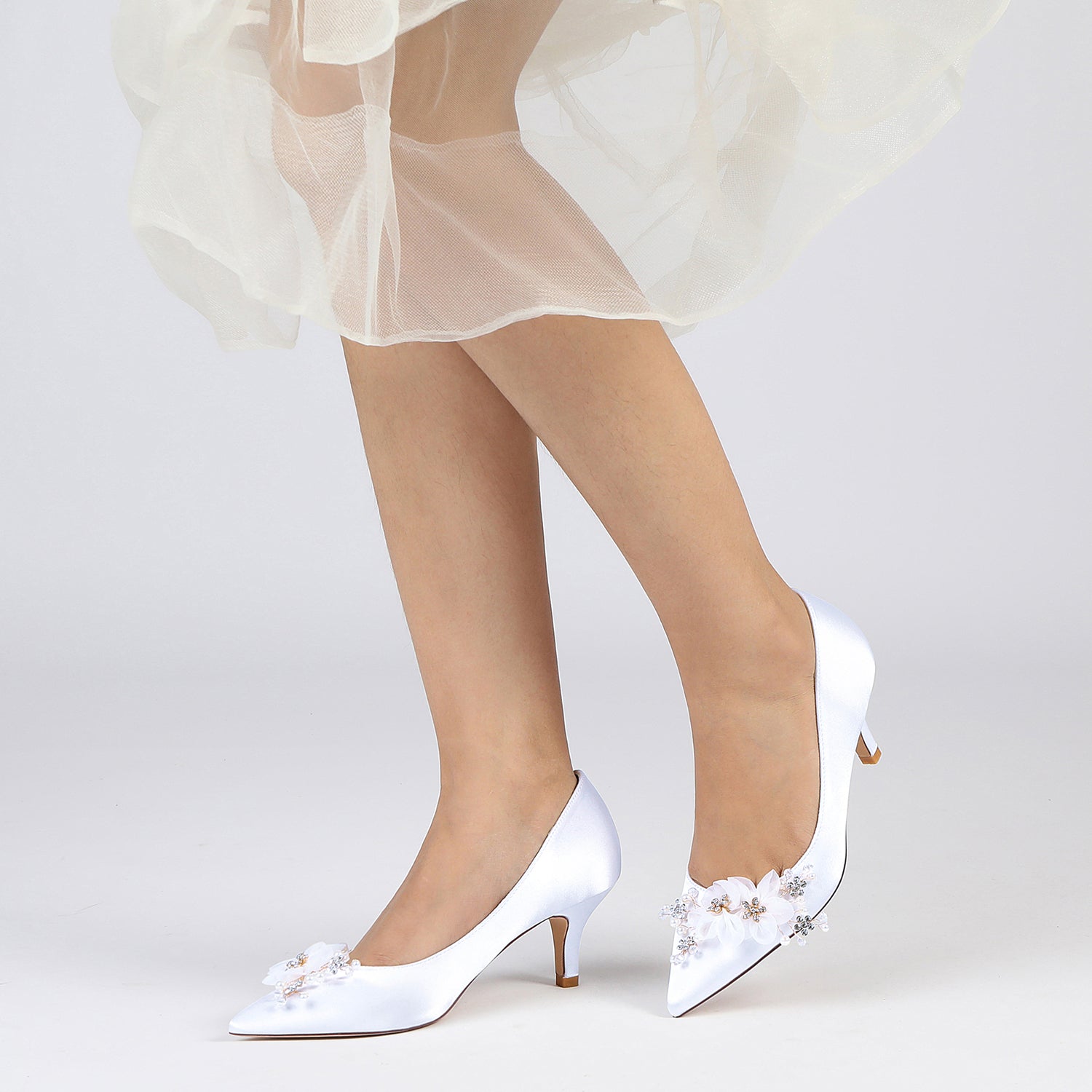 Women's Silk Satin With Flower Closed Toe Stiletto Heel Evening Shoes