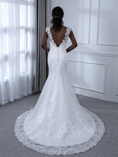 #Piper 9880109 Sheer Neck Sleeveless Tulle Mermaid Wedding Dresses with Appliques