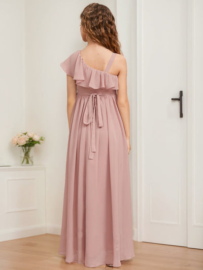 #Completion 96631071 A-Line/Princess Asymmetrical Sleeveless Ruffles Junior Bridesmaid Dresses
