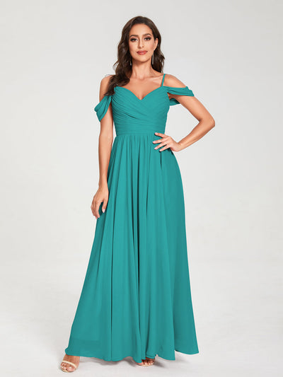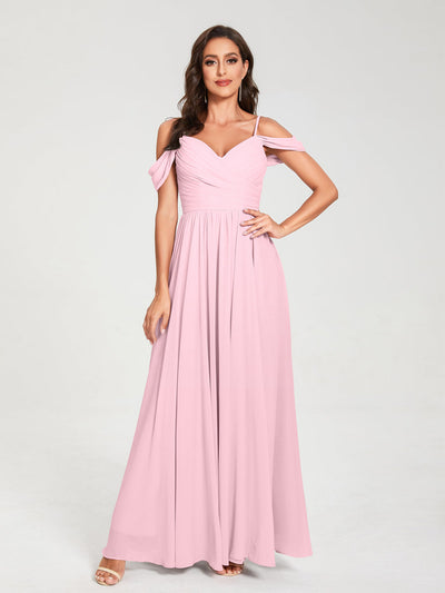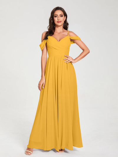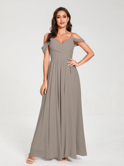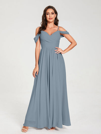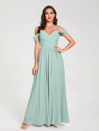 #Gabriella 68104 A-Line/Princess Chiffon Spaghetti Straps Off-the-Shoulder Sleeveless Floor-Length Split Side Bridesmaid Dresses