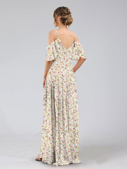 #Essential 99091047 A-Line/Princess Cold Shoulder Short Sleeves Ruffles Floral Bridesmaid Dresses