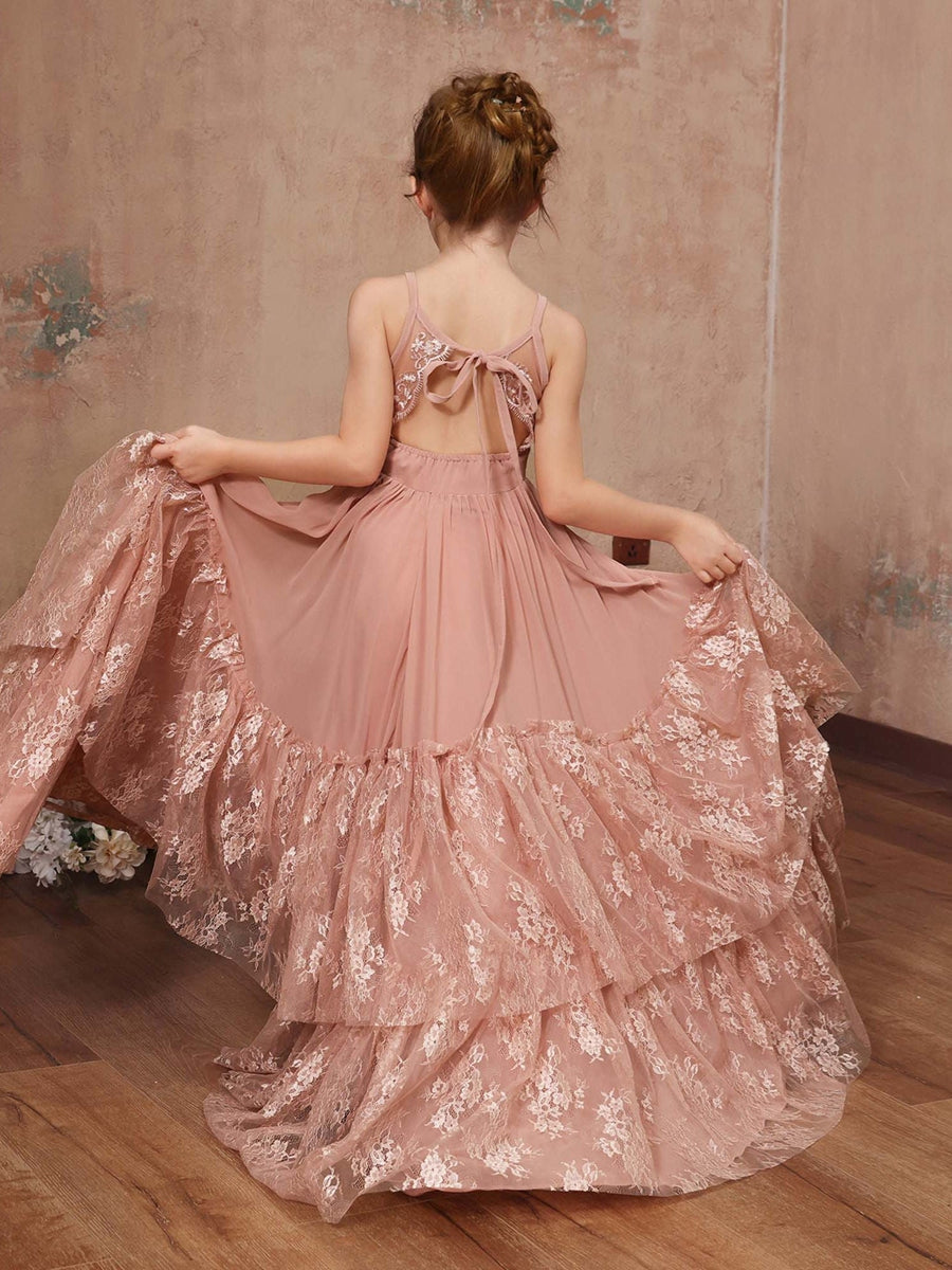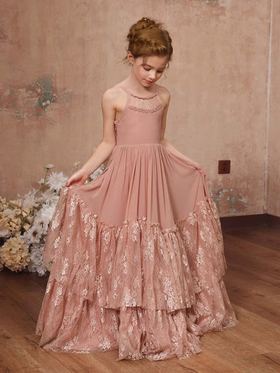 #Daniella K491929 A-Line/Princess Lace Chiffon Sleeveless Scoop Neck Floor-Length Flower Girl Dresses