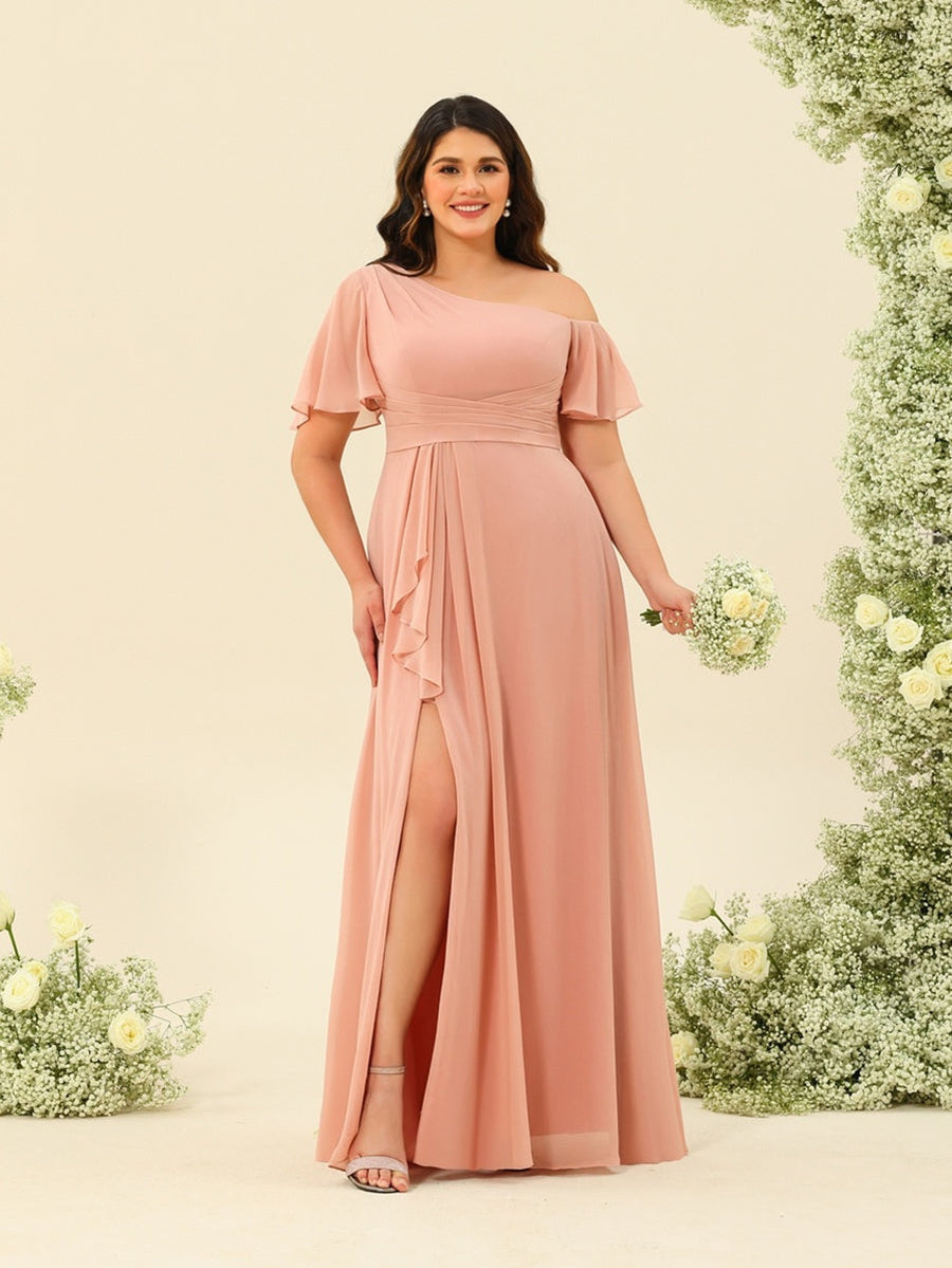 #Salem 99071936P A-Line/Princess One-Shoulder Floor-Length Split Side Plus Size Bridesmaid Dresses