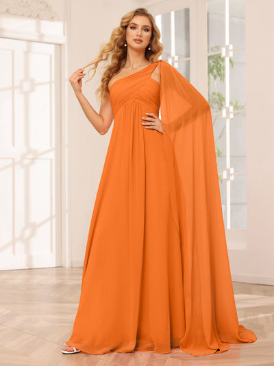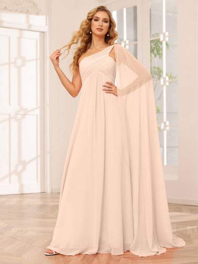 #Vada 9901318 A-Line/Princess One-Shoulder Long Bridesmaid Dresses with Ruched