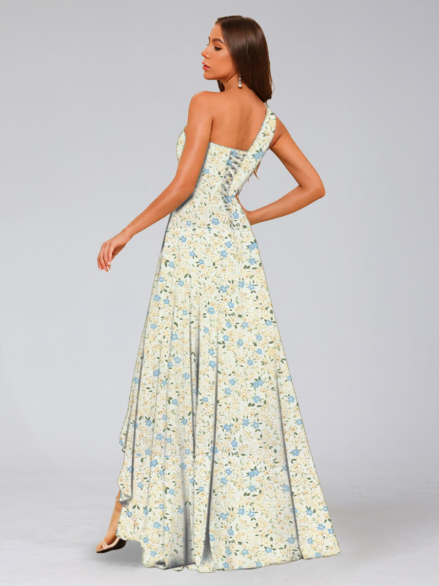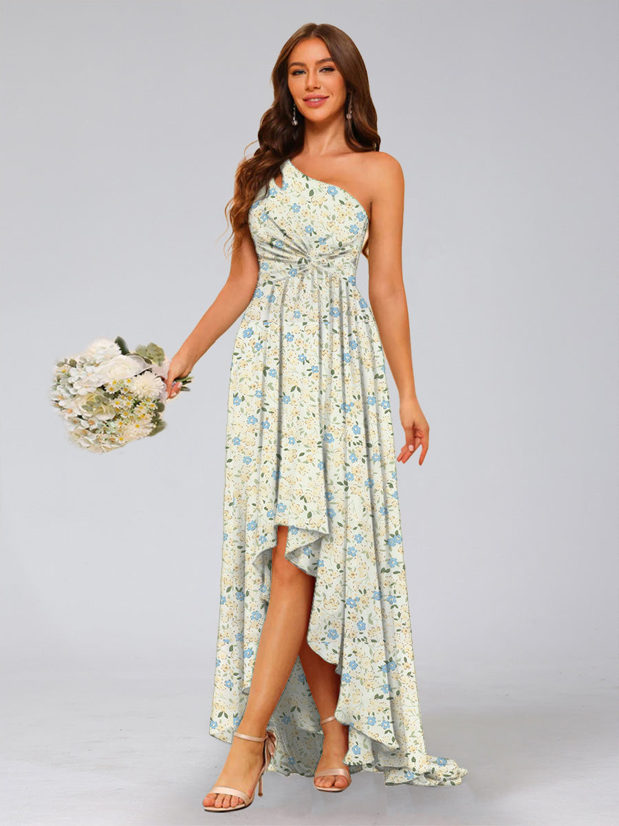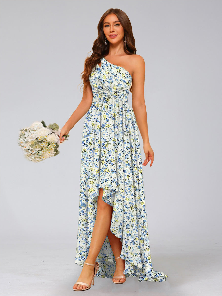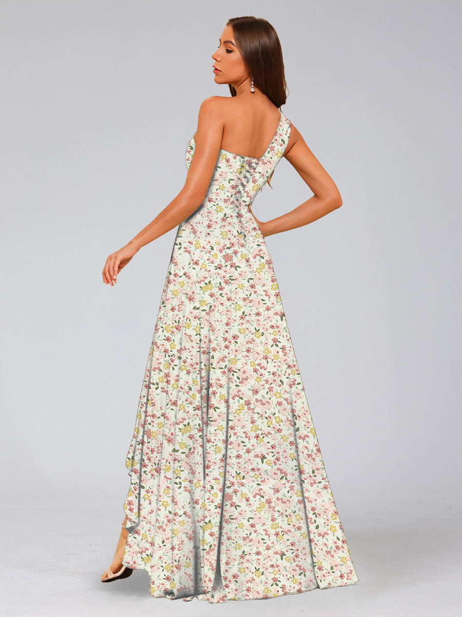 #Behave 99091011 A-Line/Princess One-Shoulder Sleeveless Ruched Floral Bridesmaid Dresses