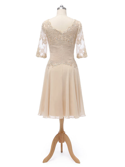 #Itzayana 21005 A-Line/Princess Scoop Half Sleeves Chiffon With Pleats Applique Knee-Length Bridesmaid Dresses