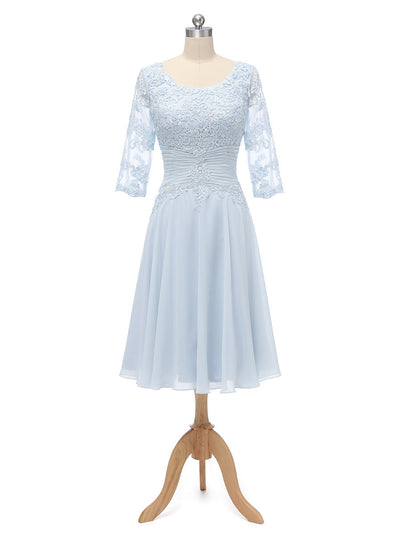 #Arleth 21017 A-Line/Princess Scoop Half Sleeves Chiffon With Pleats Applique Knee-Length Bridesmaid Dresses