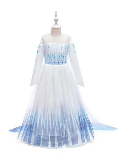 #Mylah 9661003 A-Line/Princess Scoop Long Sleeves Flower Girl Dresses with Printed Flowers & Watteau Train
