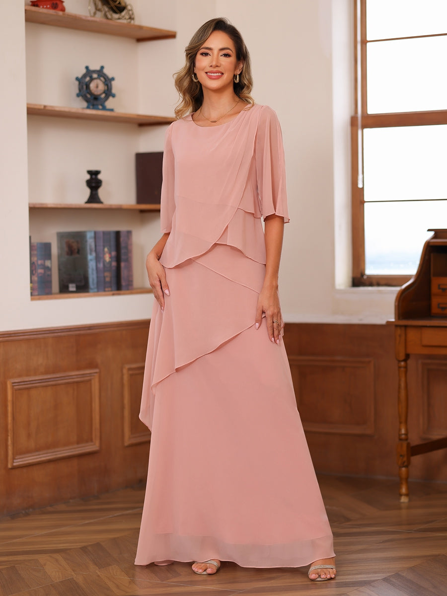#Cara 22461954 A-Line/Princess Scoop Short Sleeves Tiered Chiffon Mother of the Bride Dresses