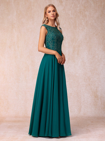 #Isabela 2322399 A-Line/Princess Sheer Neck Sleeveless Long Formal Evening Dresses with Beading & Appliques