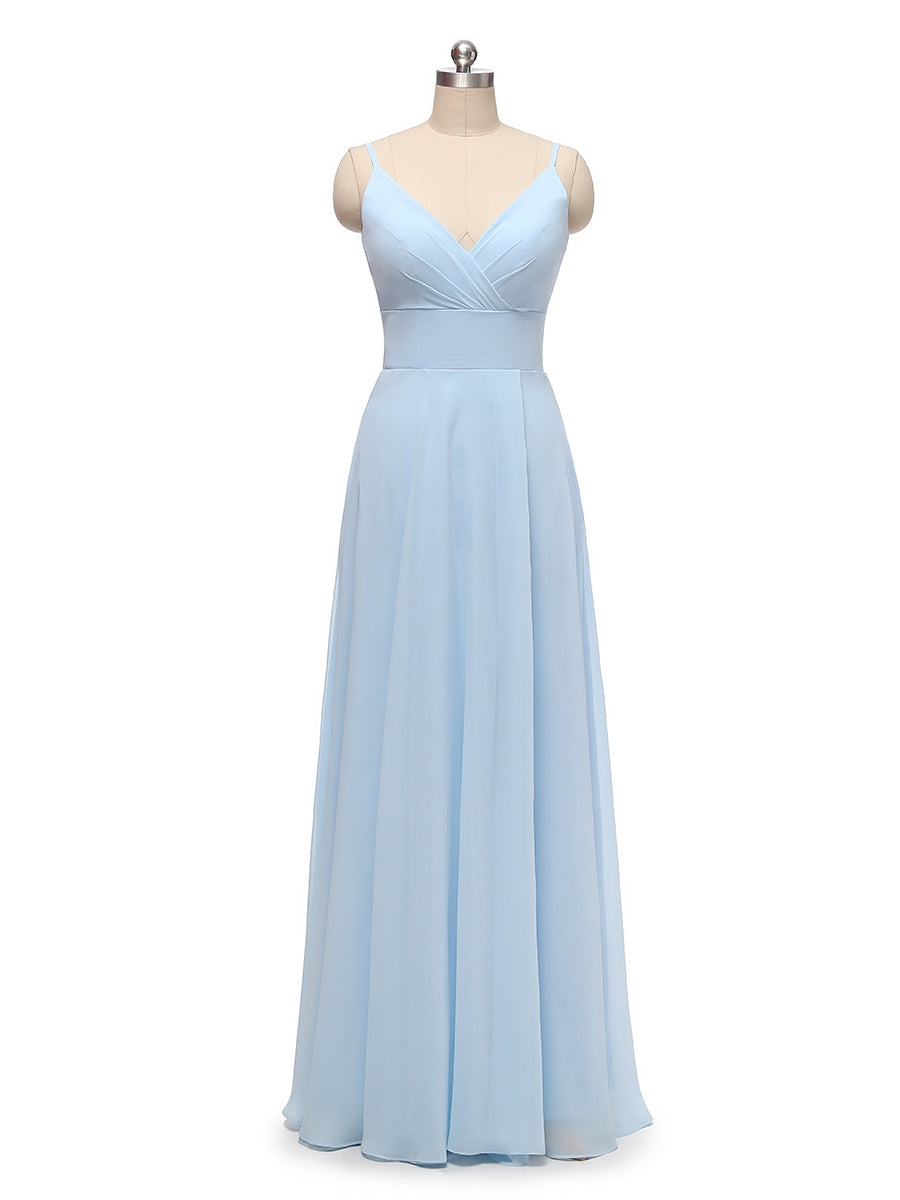 #Landry 21014 A-Line/Princess Spaghetti Straps V-Neck Sleeveless Chiffon With Pleats Floor-Length Bridesmaid Dresses