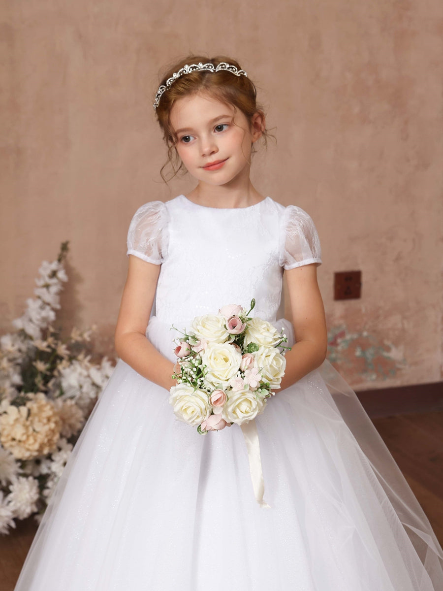 #Mckenna K491922 Ball-Gown Tulle Short Sleeves Scoop Neck Floor-Length Flower Girl Dresses