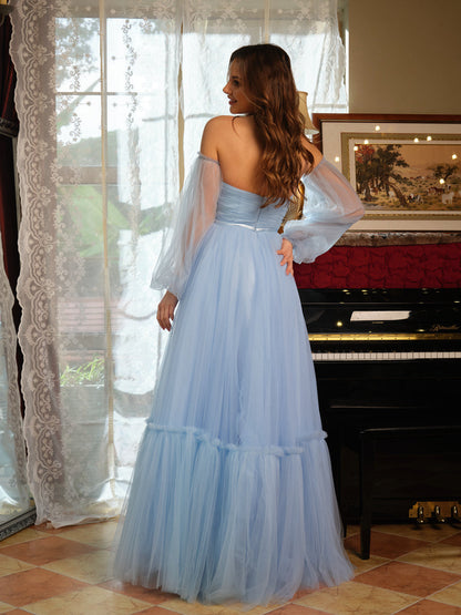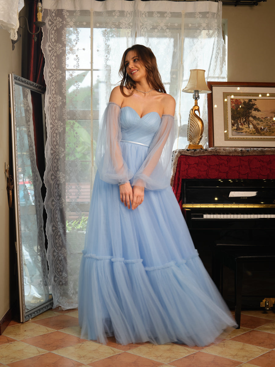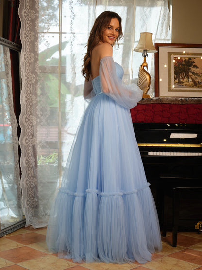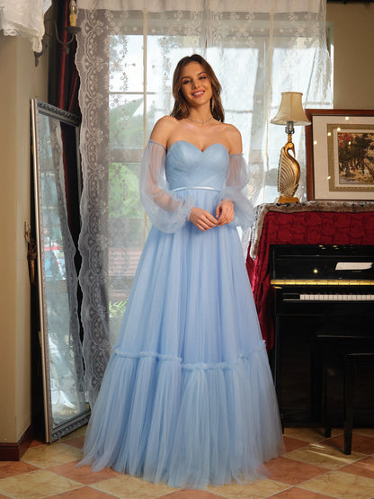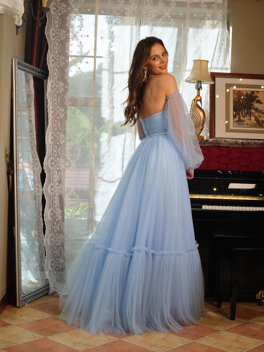 #Henley 8808257 A-Line/Princess Tulle Sweetheart Long Prom Dresses with Belt