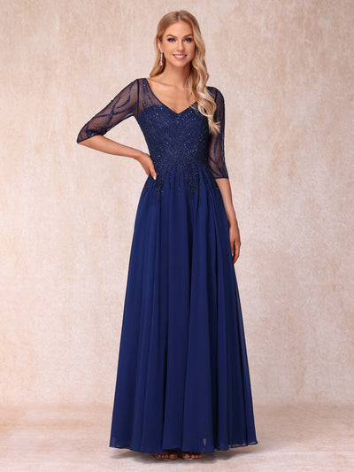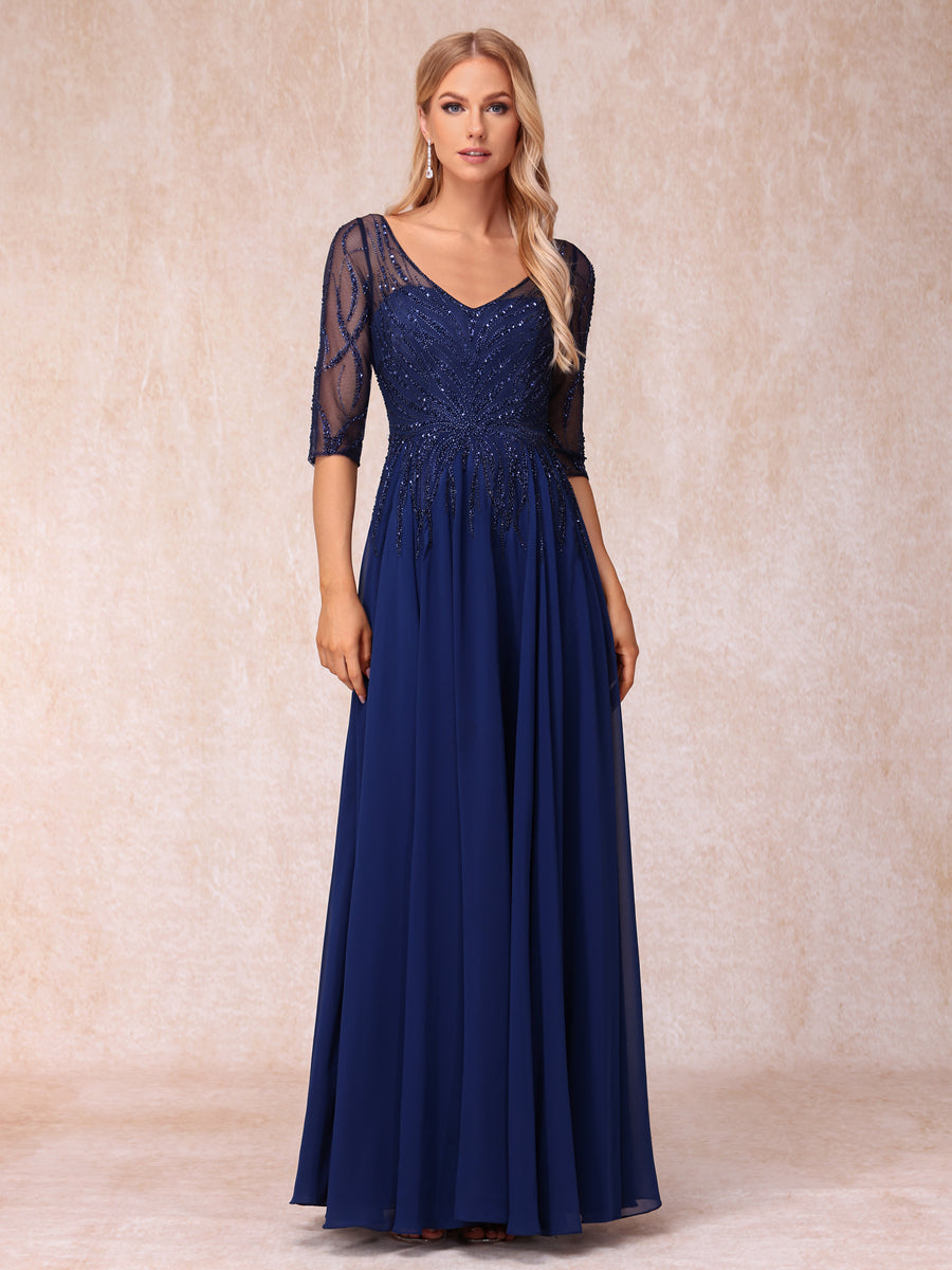 #Tessa 2322393 A-Line/Princess V-Neck Half Sleeves Long Formal Evening Dresses with Beading
