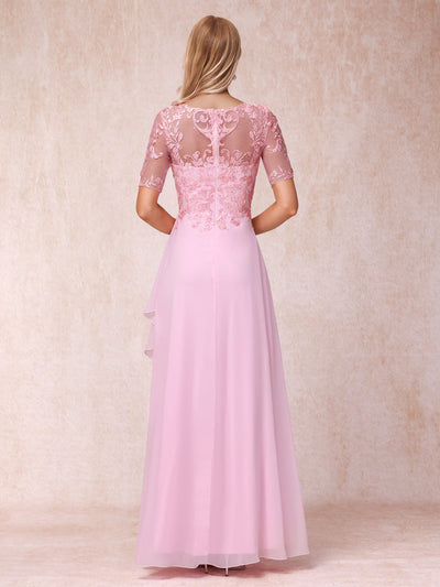 #Kira 2322400 A-Line/Princess V-Neck Short Sleeves Long Formal Evening Dresses with Appliques