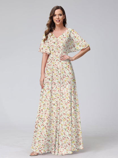 #Capacity 99091019 A-Line/Princess V-Neck Short Sleeves Pleats Floral Bridesmaid Dresses