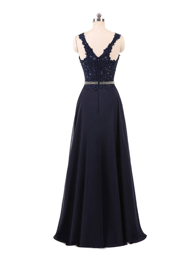 #Judith 21019 A-Line/Princess V-Neck Sleeveless Chiffon With Beading Rhinestone Floor-Length Bridesmaid Dresses