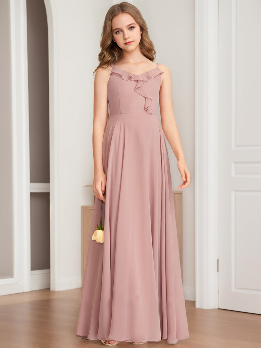 #Stregth 96631034 A-Line/Princess V-Neck Sleeveless Ruffles Junior Bridesmaid Dresses