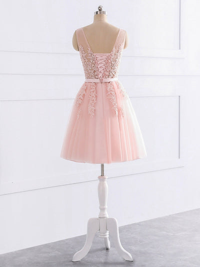 #Kahlani 21008 A-Line/Princess V-Neck Sleeveless Tulle With Applique Sequin Short/Mini Bridesmaid Dresses