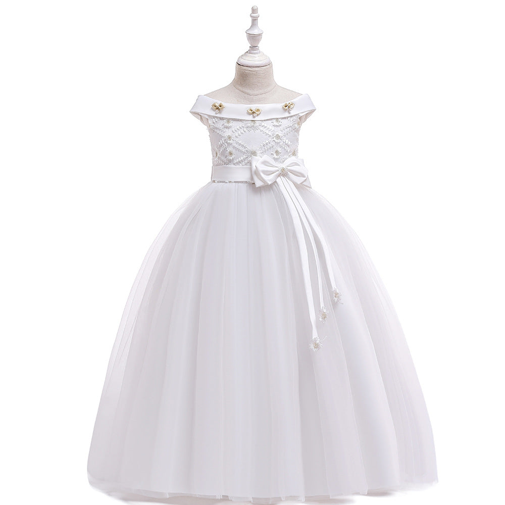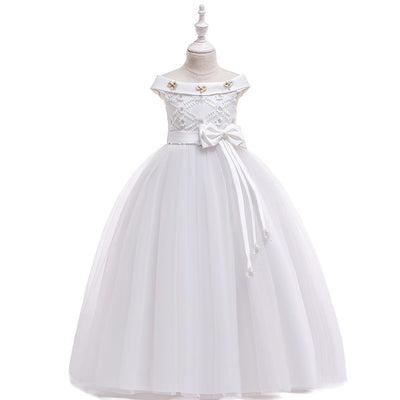 #Leila 9661056 Ball Gown Off-the-Shoulder Short Sleeves Flower Girl Dresses with Bow Knot