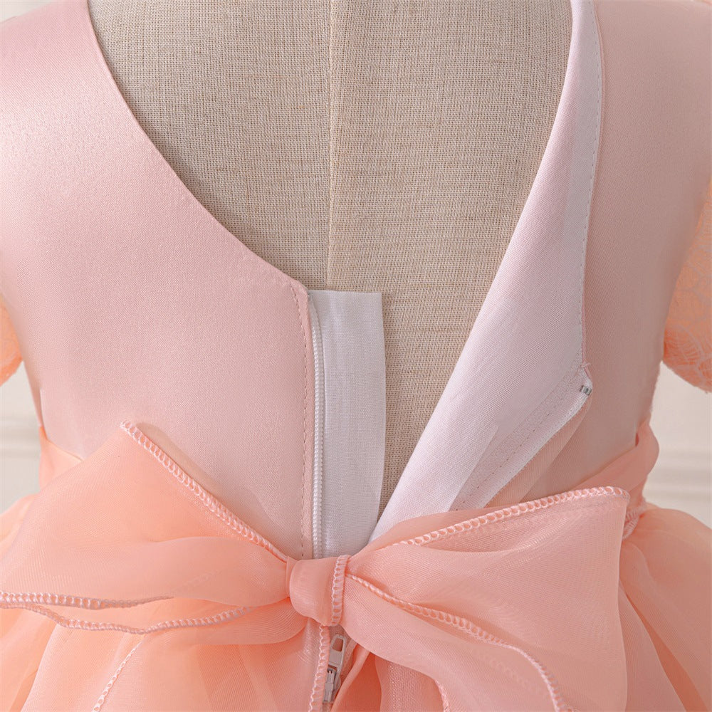 #Odalys 9661183 Ball Gown Scoop Puff Sleeves Flower Girl Dresses with Lace