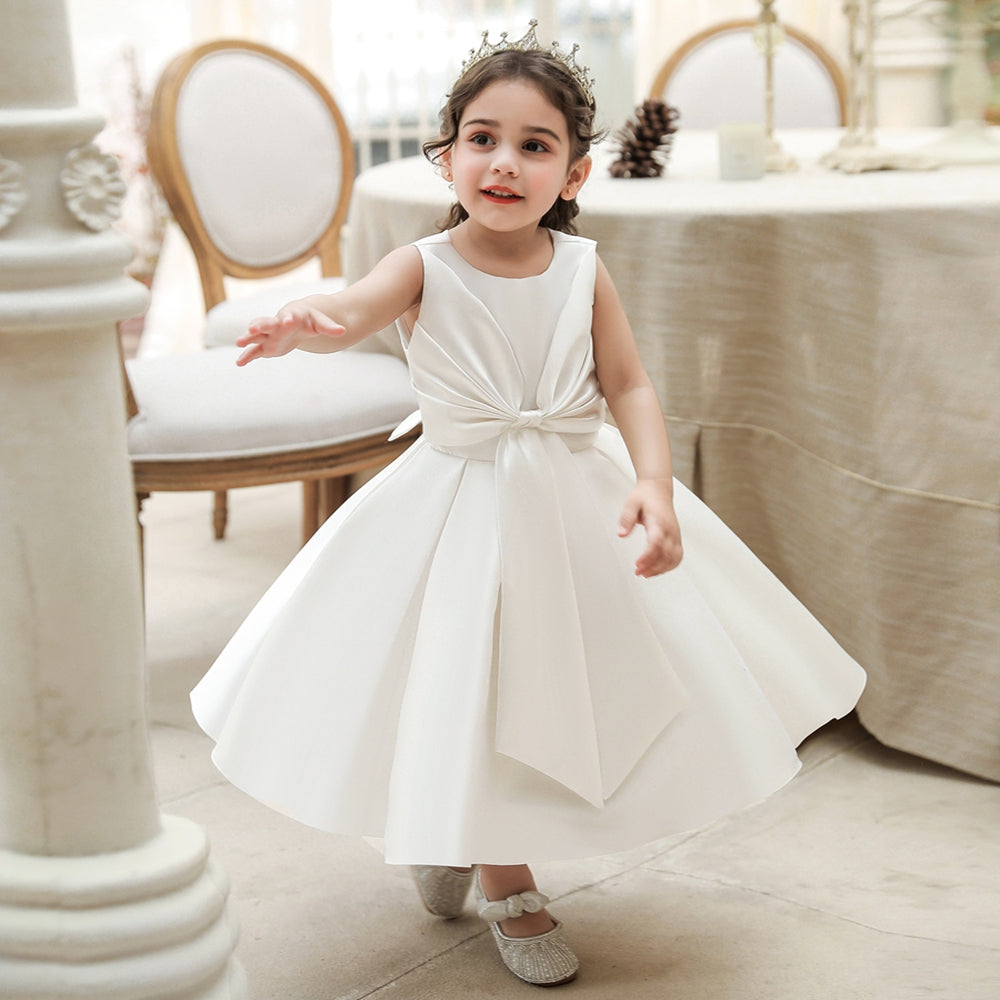 #Nella 9661150 Ball Gown Scoop Sleeveless Flower Girl Dresses with Bow knot