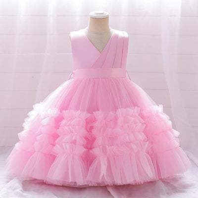 Ball Gown V-Neck Sleeveless Knee-Length Ruched Christmas Dresses for Girls with Belt