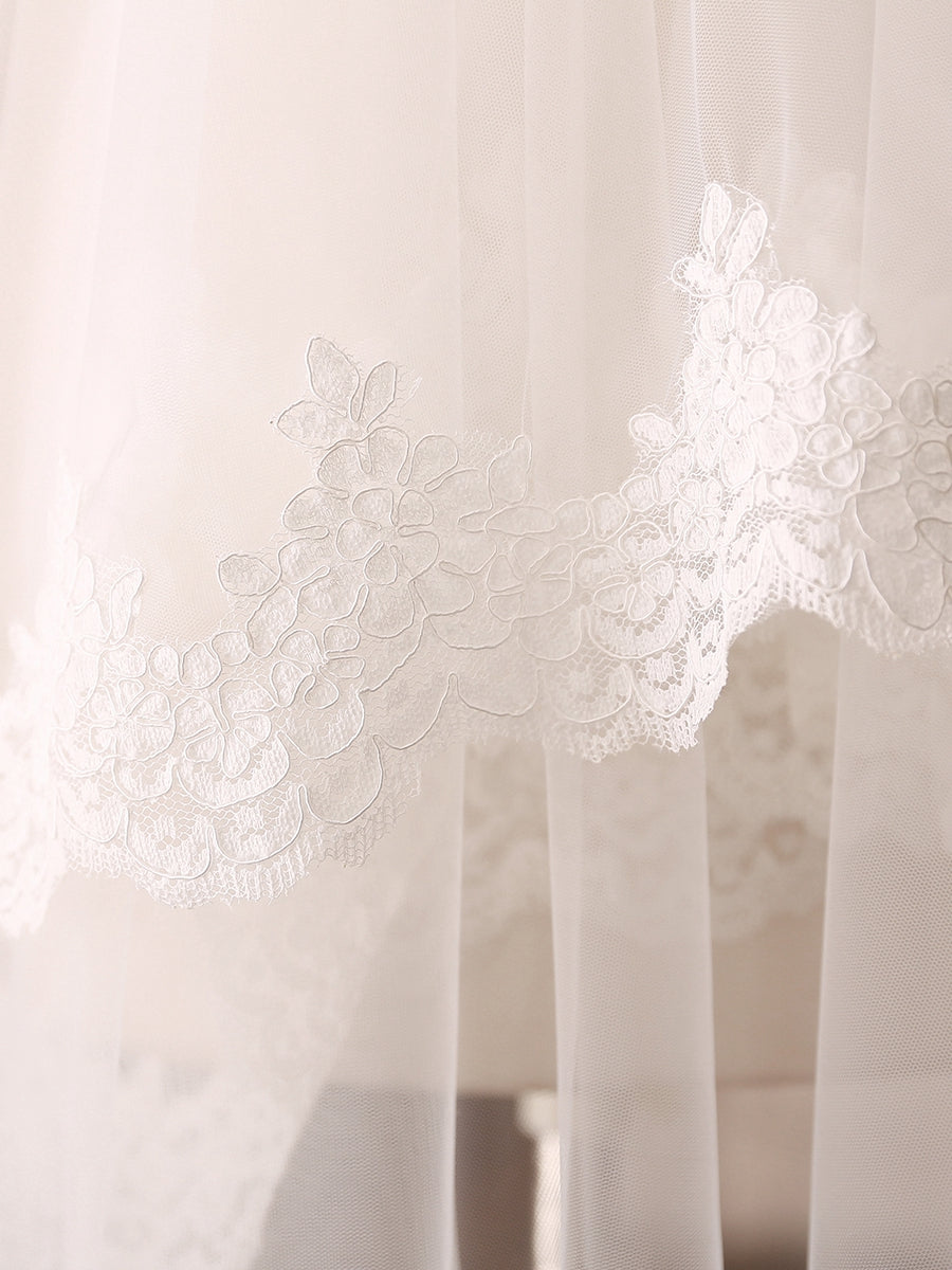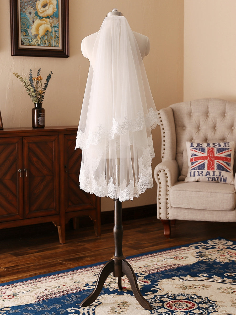 Charming 2 Layer Tulle With Lace Wedding Veils