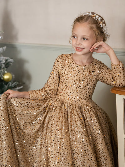 #Elliana 9660580 Crew Neck Velvet Sequins Long Sleeves Flower Girl Dresses