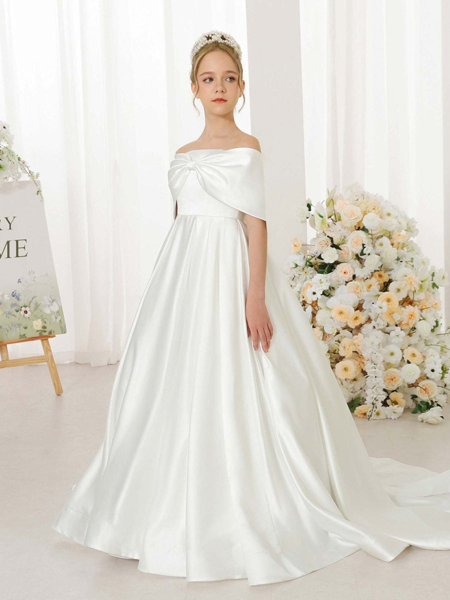 #Phoenix K491911 Empire Satin Short Sleeves Off-the-shoulder Floor-Length Flower Girl Dresses