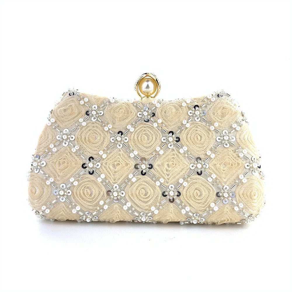 Flower Shining Pearls Clutch Women's Handbags