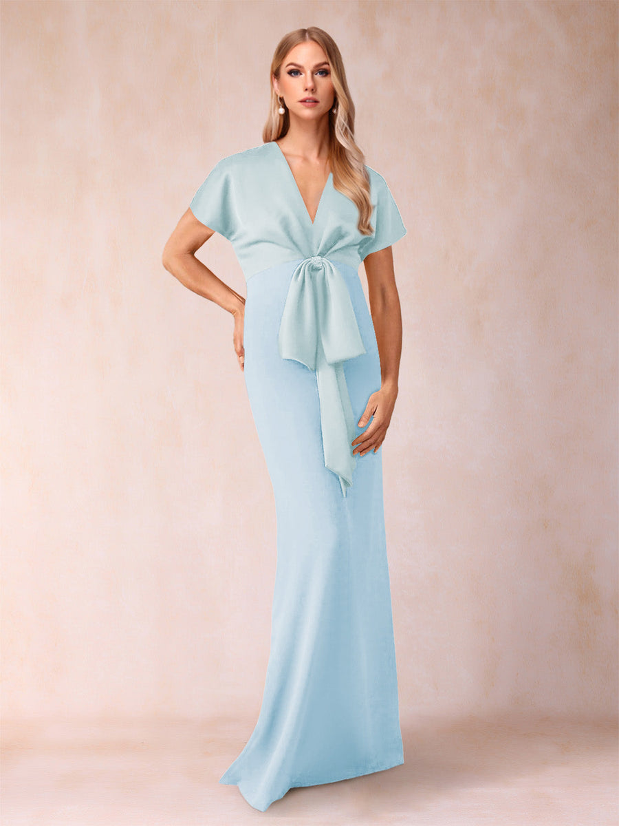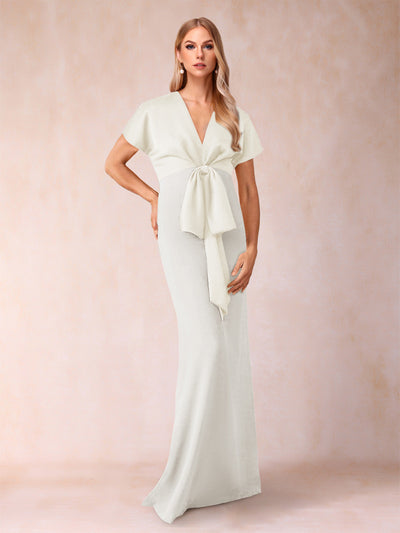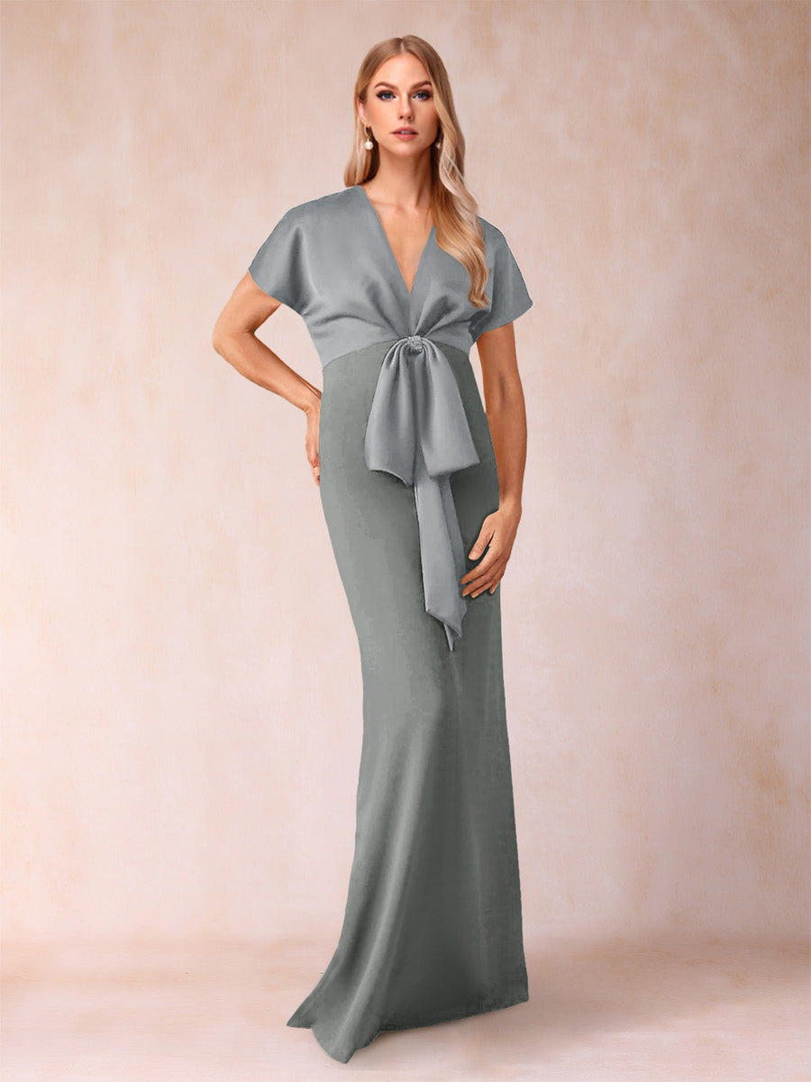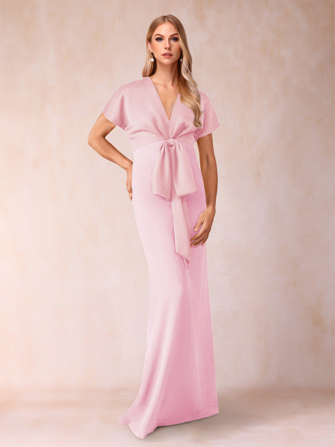 #Tara 12010421 Sheath/Column V-Neck Short Sleeves Mother of the Bride Dresses with Bow Knot