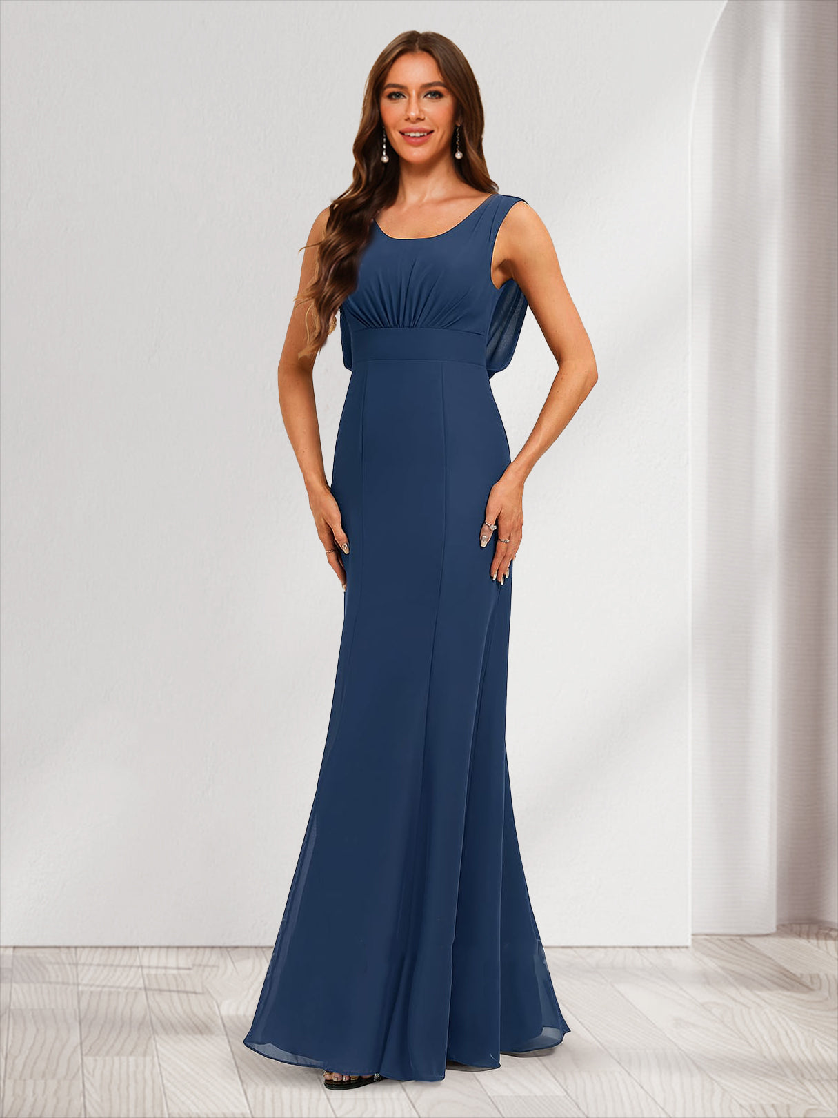 #Bernie 12011793 Trumpet/Mermaid Scoop Sleeveless Bridesmaid Dresses with Ruffles