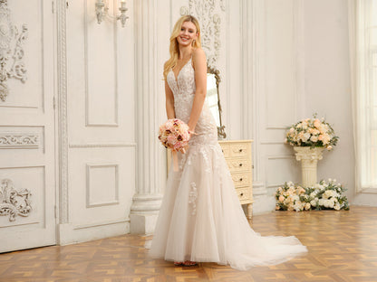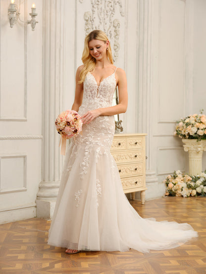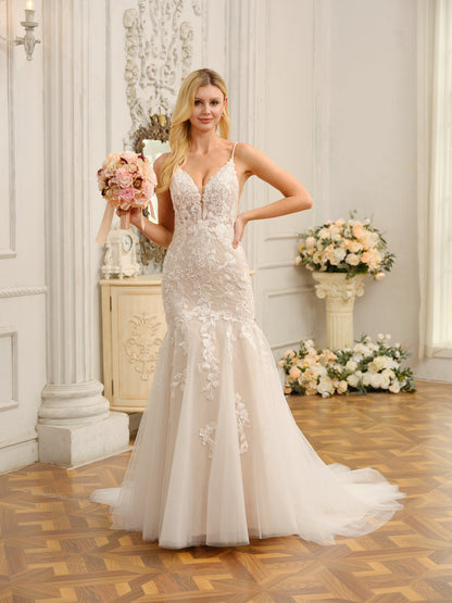 Trumpet/Mermaid Spaghetti Straps Sleeveless Long Wedding Dresses with Appliques