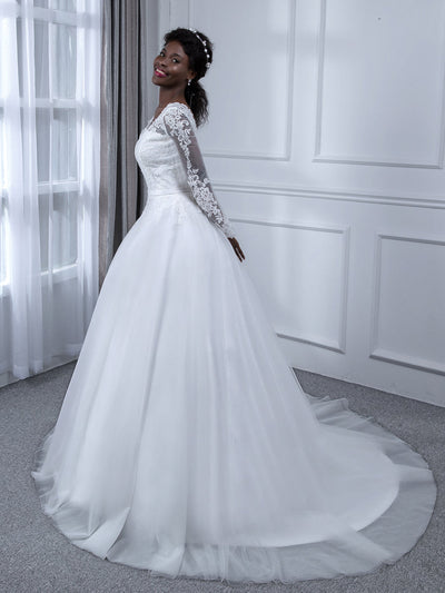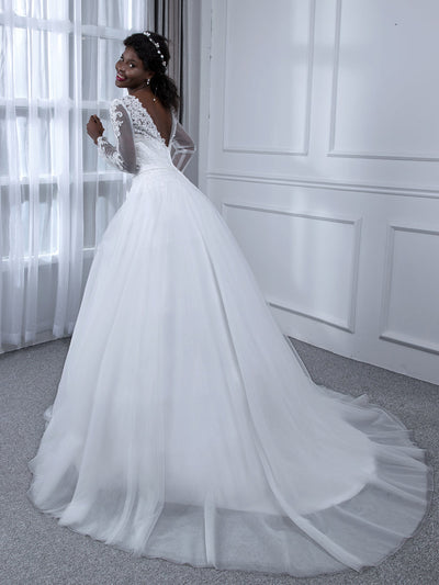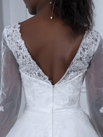 #Cora 9880102 V-Neck Long Sleeves Tulle Ball Gown Wedding Dresses with Appliques