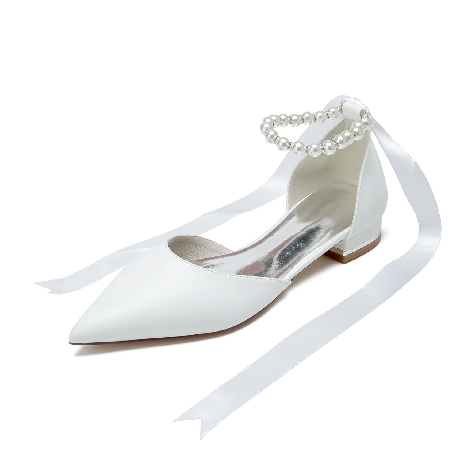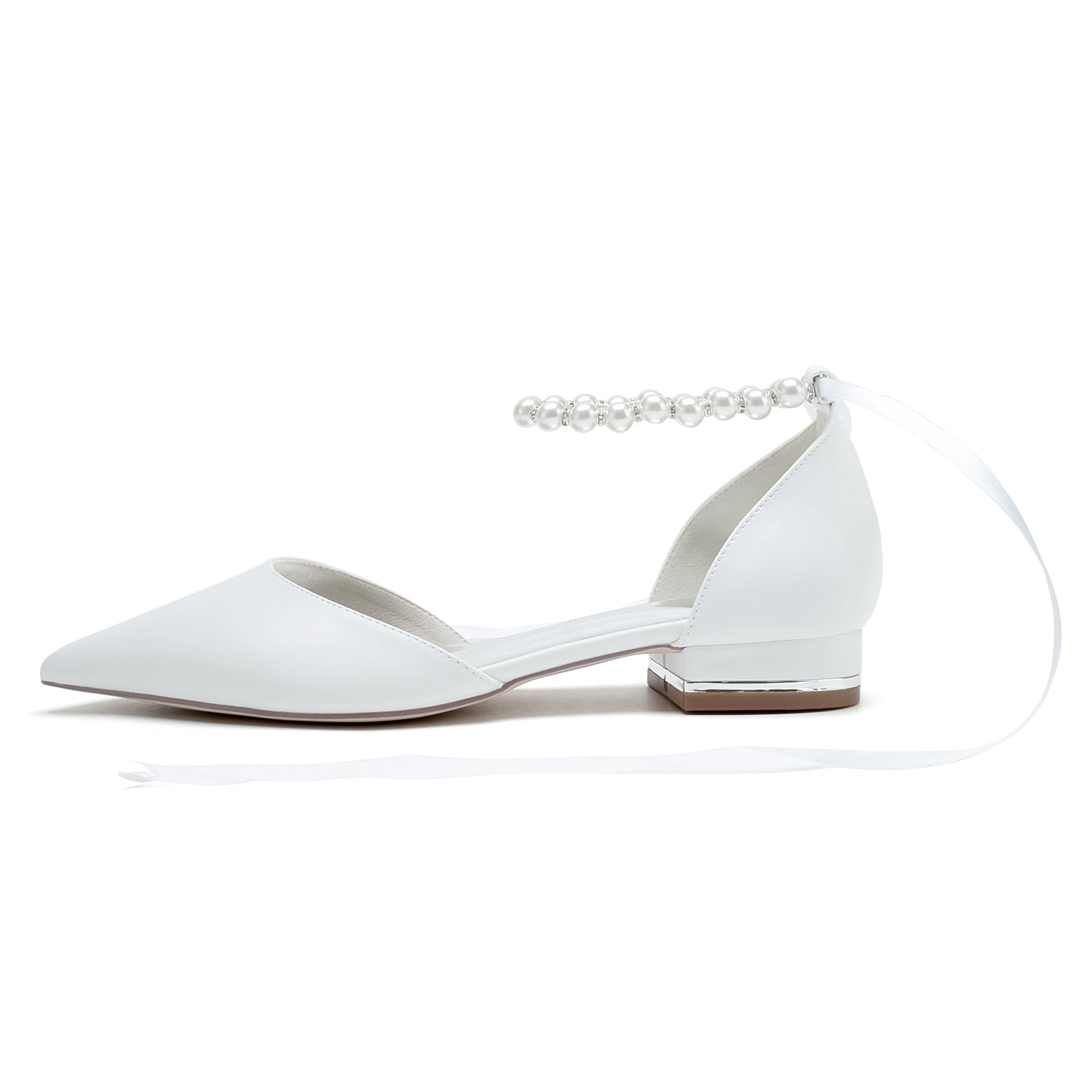 Women's PU With Ankle Strap Pearl Closed Toe Flat Heel Wedding Shoes