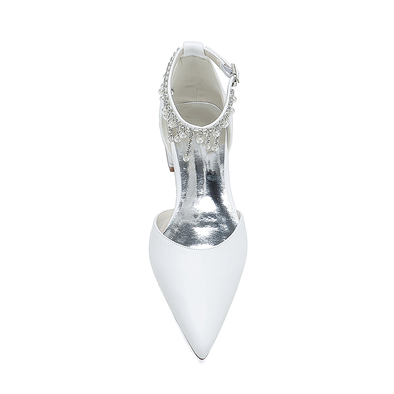 Women's PU With Ankle Strap Pearl Tassel Closed Toe Flat Heel Evening Shoes