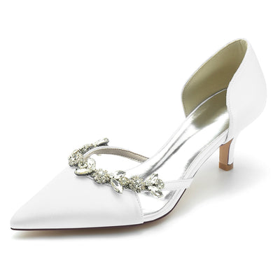 Women's Silk Satin Closed Toe Stiletto Heel With Rhinestone Party Shoes