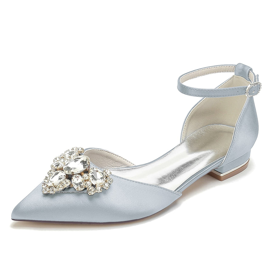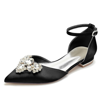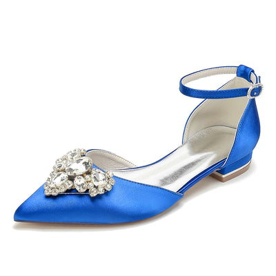 Women's Silk Satin Closed Toe With Ankle Strap Rhinestone Flat Heel Wedding Shoes