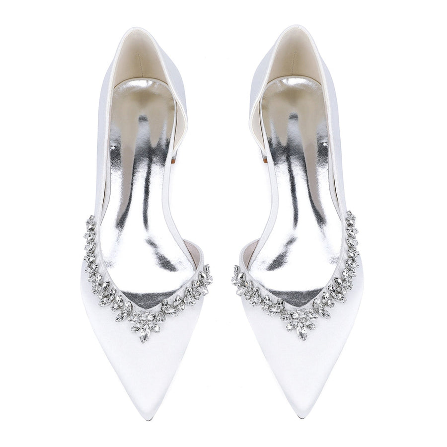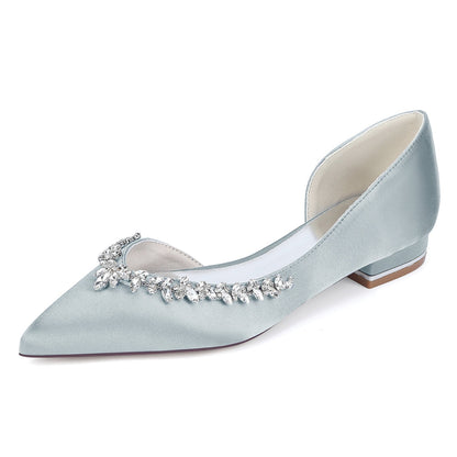 Women's Silk Satin Closed Toe With Rhinestone Flat Heel Wedding Shoes