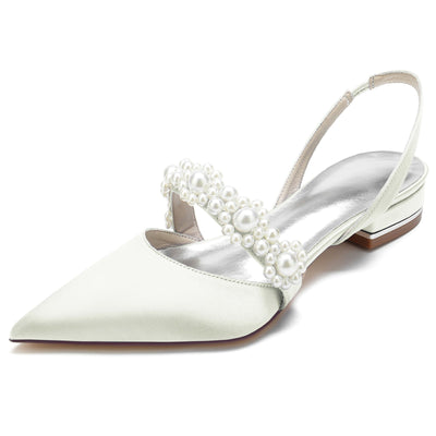Women's Silk Satin Flower With Closed Toe Flat Heel Evening Shoes
